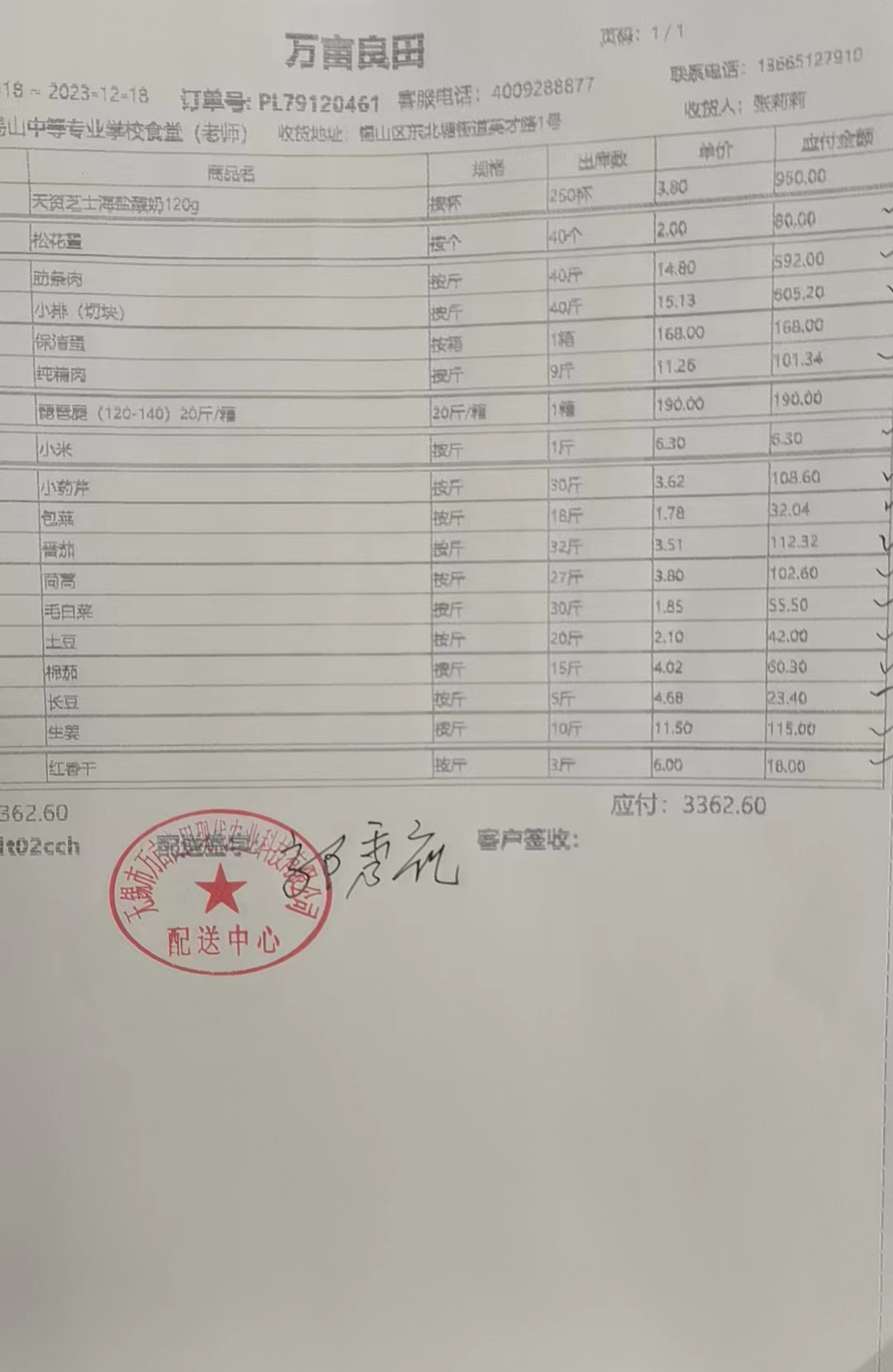 教师餐厅第16周食谱